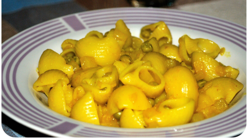 - una pentola capiente mettete a bollire acqua sufficiente per la cottura della pasta, quando avrà raggiunto temperatura salate con il sale grosso e aspettate che ricompaia il bollore versate la pasta e fatela cuocere per il tempo necessario o secondo i vostro gusto personale. Scolatela aiutandovi con una schiumarola o con uno scolapasta e mescolate la pasta al condimento con piselli e curcuma. Servite in tavola le conchiglie con piselli e curcuma insaporite con erbe aromatiche fresche sminuzzate al momento.